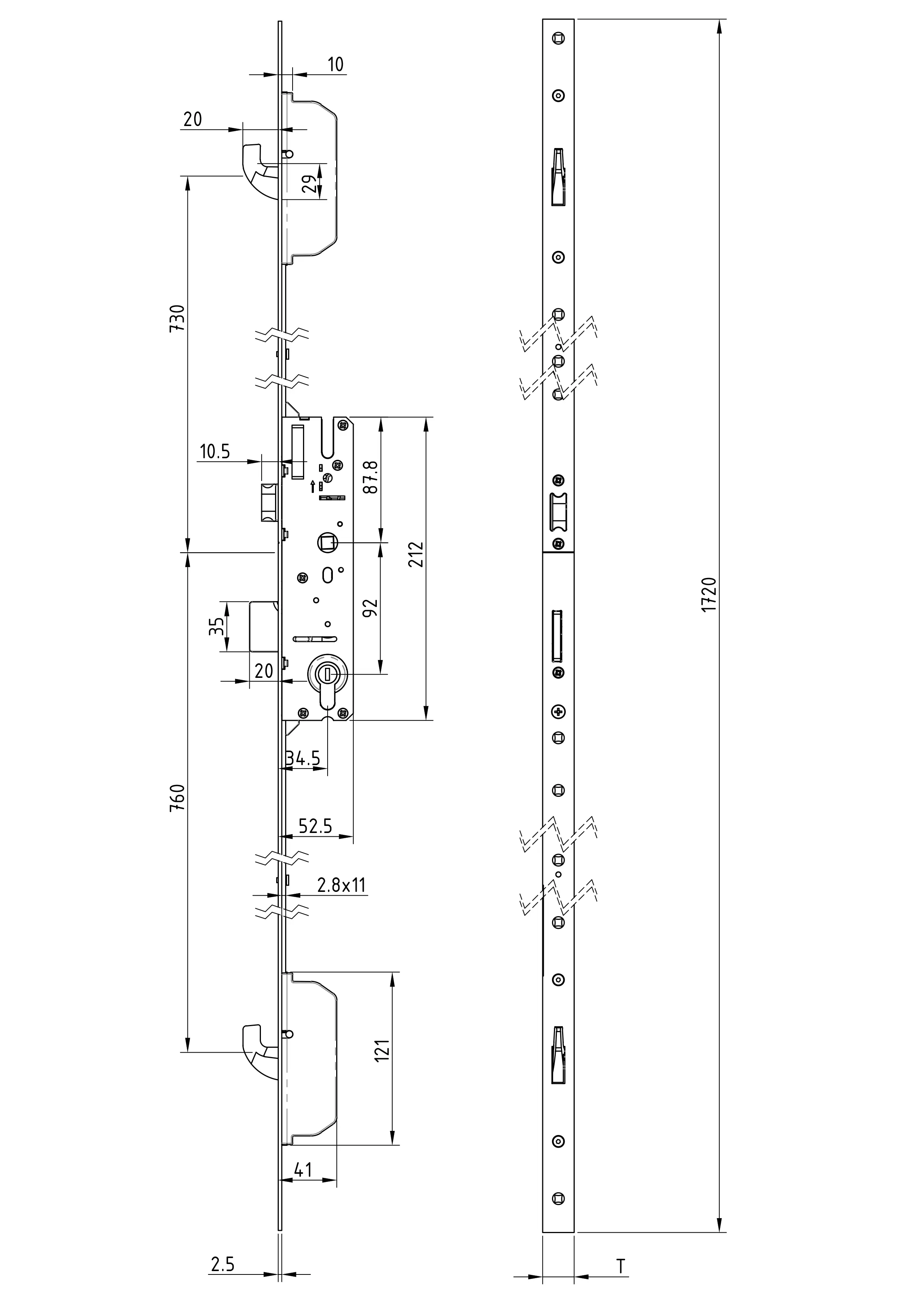 Trozatvorna brava za Al vrata na potez sa kljunom - 70645-70646 35/92
